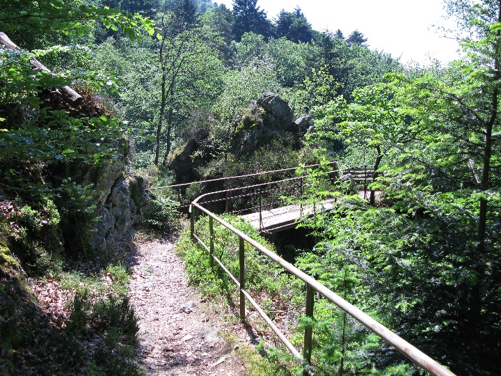 Brückchen über die tiefen offenen Verhaue am Alte-Mann-Fels